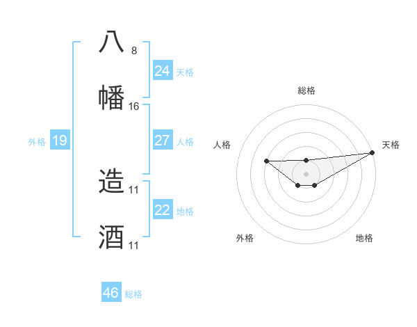 八幡 造酒さんの総格は46画の1点!