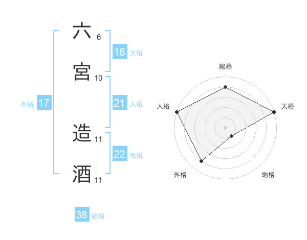 六宮 造酒さんを姓名の画数から五運を鑑定