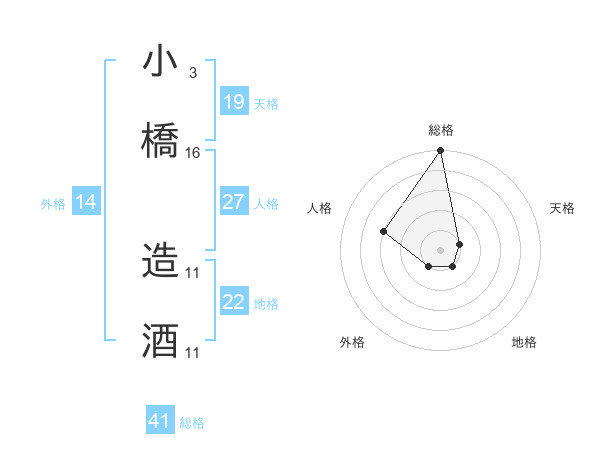 小橋 造酒さんを姓名の画数から五運を鑑定