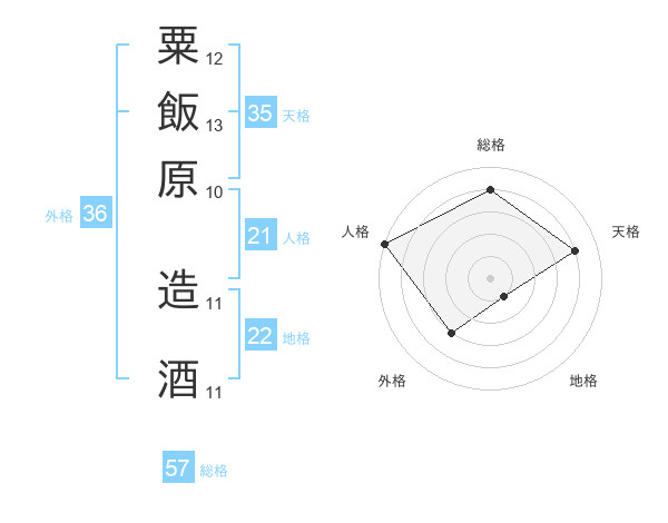粟飯原 造酒さんの総格は57画の4点!