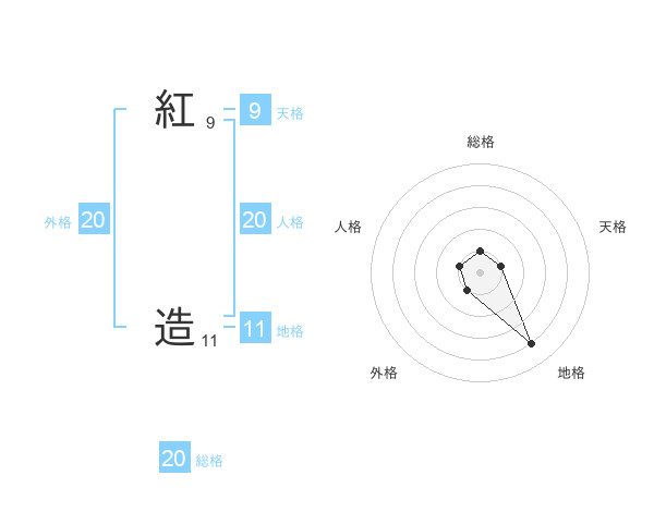 紅 造さんの総格は20画の1点!