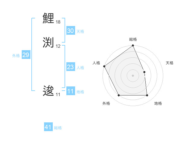鯉渕 逡さんの総格は41画の5点!
