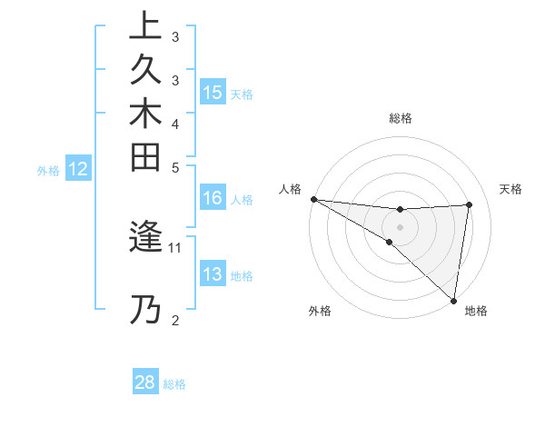 上久木田 逢乃さんを姓名の画数から五運を鑑定