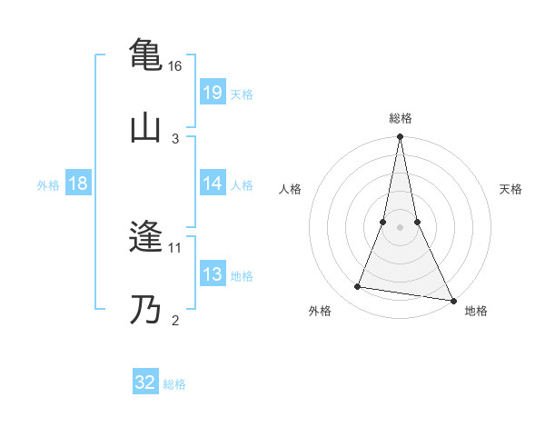 亀山 逢乃さんを姓名の画数から五運を鑑定