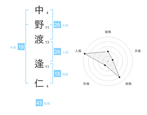 中野渡 逢仁さんを姓名の画数から五運を鑑定