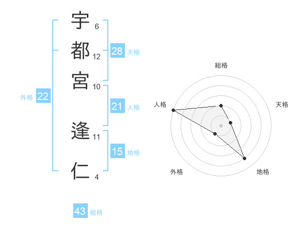 宇都宮 逢仁さんを姓名の画数から五運を鑑定