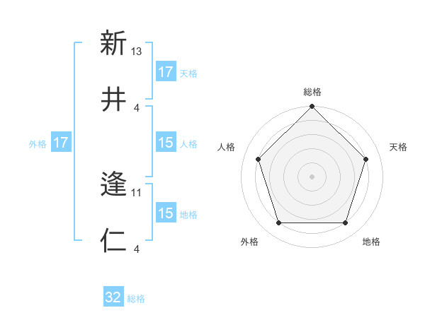 新井 逢仁さんを姓名の画数から五運を鑑定