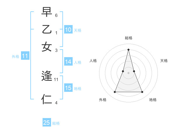 早乙女 逢仁さんを姓名の画数から五運を鑑定