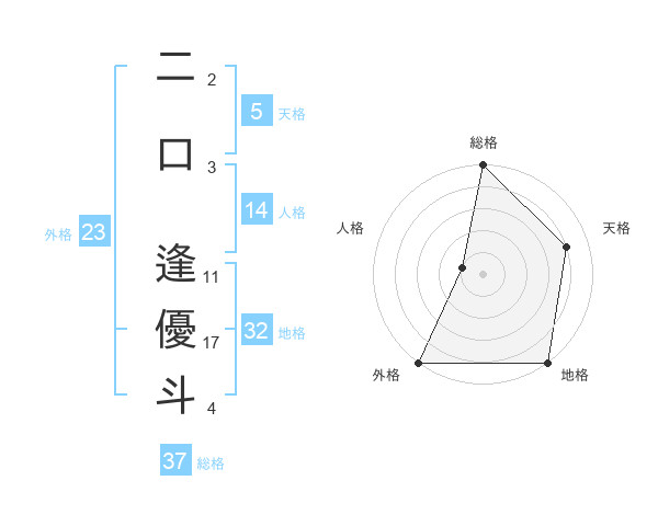 二口 逢優斗さんの総格は37画の5点!