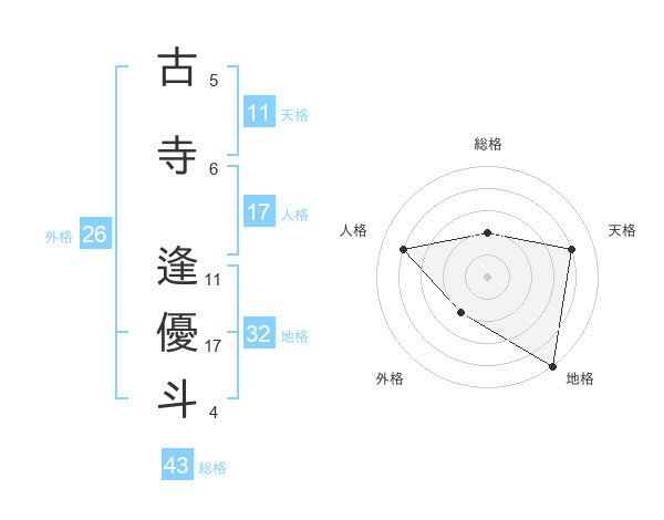 古寺 逢優斗さんを姓名の画数から五運を鑑定
