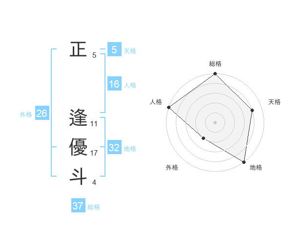 正 逢優斗さんの総格は37画の5点!
