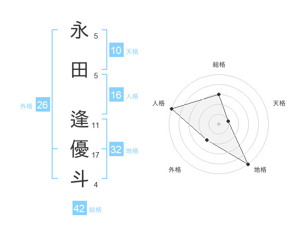 永田 逢優斗さんを姓名の画数から五運を鑑定