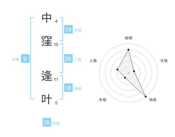 中窪 逢叶さんを姓名の画数から五運を鑑定