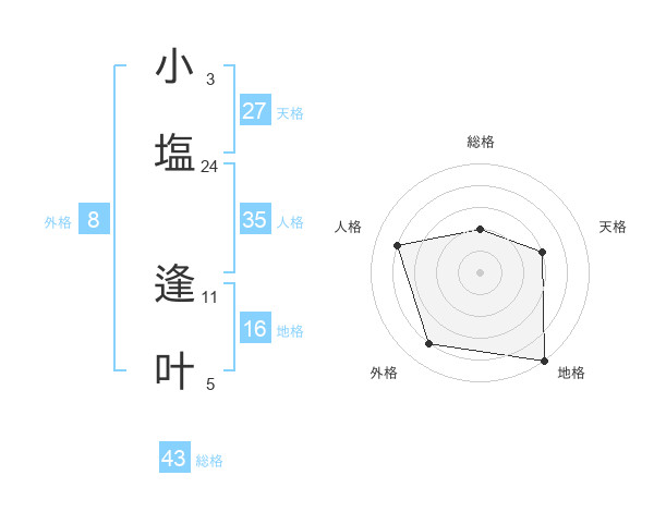小塩 逢叶さんの総格は43画の2点!