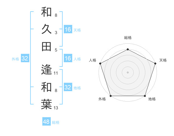 和久田 逢和葉さんを姓名の画数から五運を鑑定