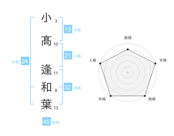 小髙 逢和葉さんの総格は45画の4点!