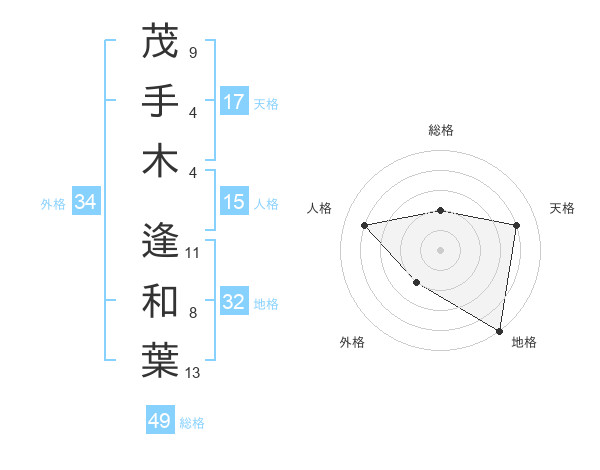 茂手木 逢和葉さんの総格は49画の2点!