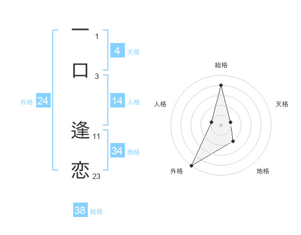 一口 逢恋さんの総格は38画の4点!
