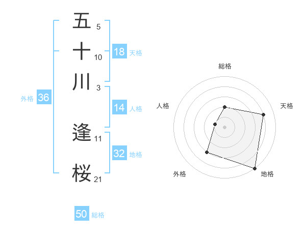 五十川 逢桜さんを姓名の画数から五運を鑑定