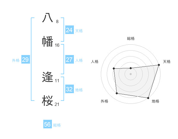 八幡 逢桜さんの総格は56画の1点!