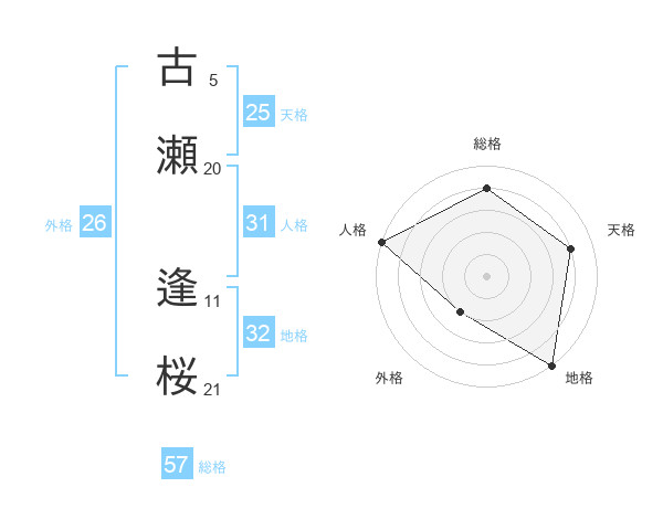 古瀬 逢桜さんを姓名の画数から五運を鑑定