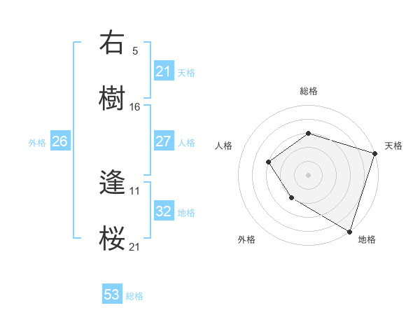 右樹 逢桜さんの総格は53画の3点!
