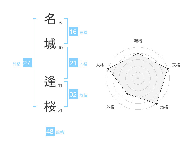 名城 逢桜さんを姓名の画数から五運を鑑定