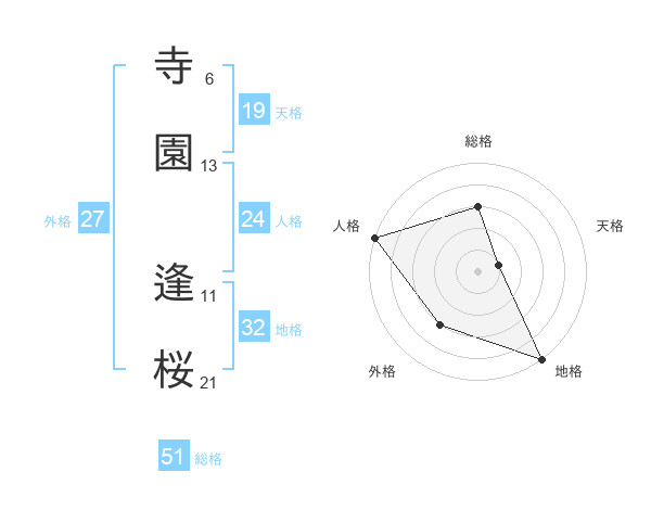寺園 逢桜さんを姓名の画数から五運を鑑定