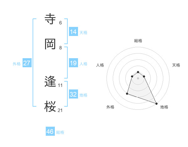 寺岡 逢桜さんを姓名の画数から五運を鑑定