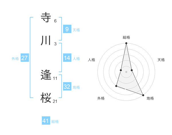 寺川 逢桜さんの総格は41画の5点!