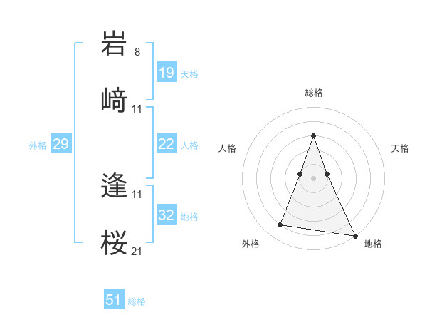 岩﨑 逢桜さんを姓名の画数から五運を鑑定