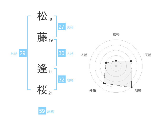 松藤 逢桜さんの総格は59画の1点!