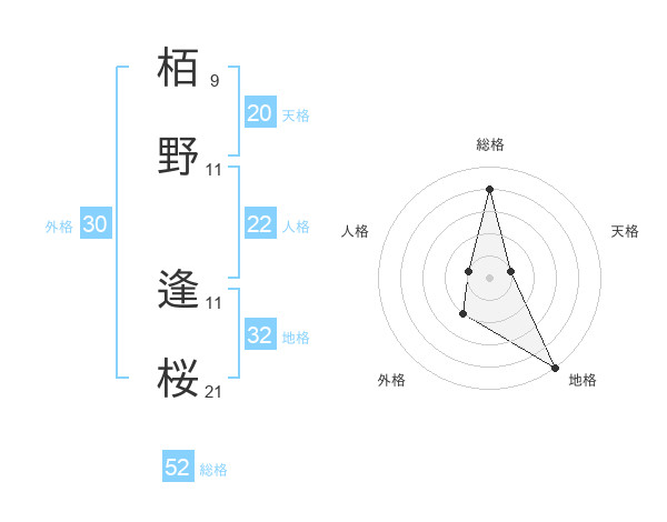 栢野 逢桜さんを姓名の画数から五運を鑑定