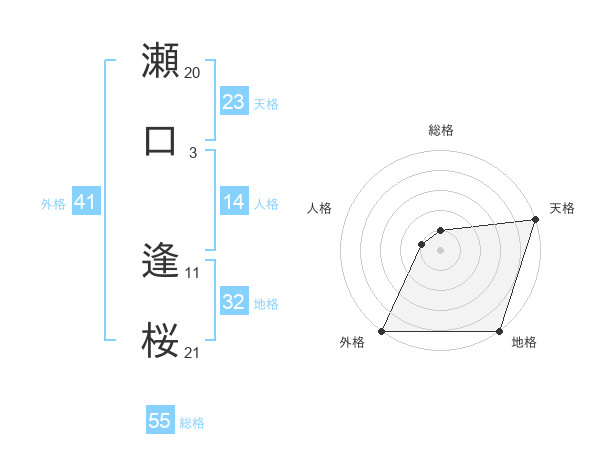 瀬口 逢桜さんを姓名の画数から五運を鑑定