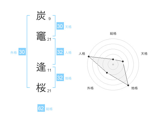 炭竈 逢桜さんを姓名の画数から五運を鑑定