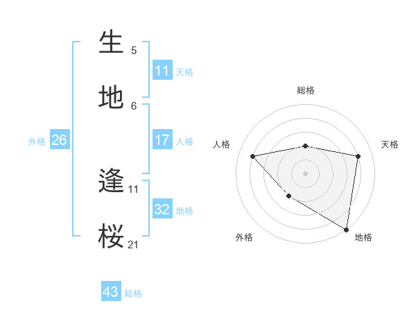 生地 逢桜さんの総格は43画の2点!