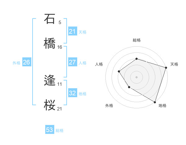 石橋 逢桜さんを姓名の画数から五運を鑑定