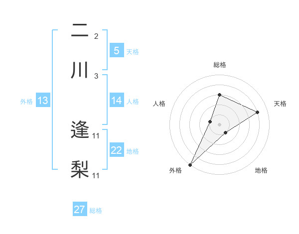 二川 逢梨さんの外格は13画の5点!