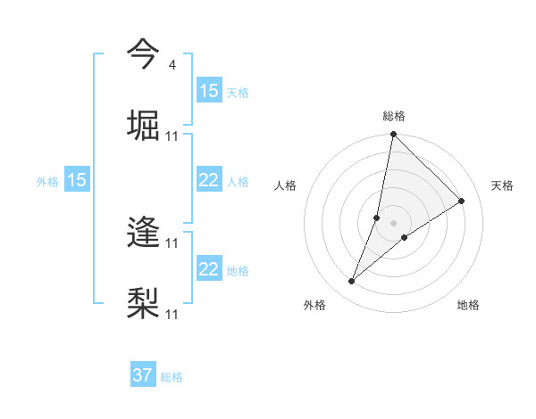 今堀 逢梨さんの総格は37画の5点