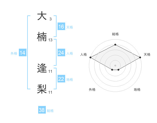 大楠 逢梨さんを姓名の画数から五運を鑑定