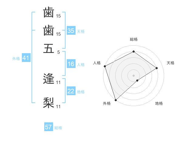 歯歯五 逢梨さんの外格は41画の5点!