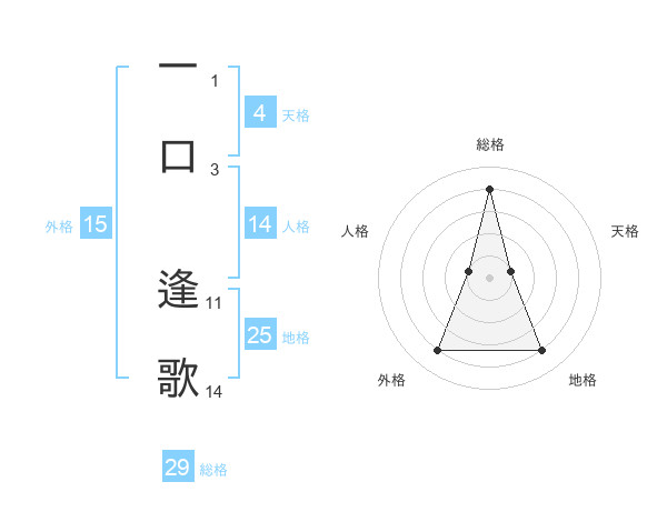 一口 逢歌さんの総格は29画の4点!