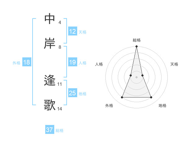 中岸 逢歌さんを姓名の画数から五運を鑑定