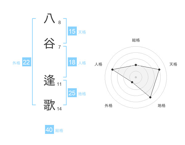 八谷 逢歌さんを姓名の画数から五運を鑑定