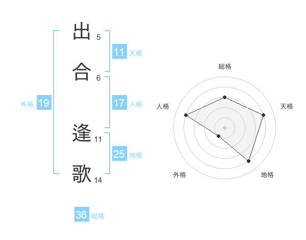 出合 逢歌さんを姓名の画数から五運を鑑定