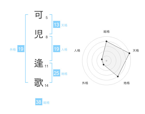可児 逢歌さんを姓名の画数から五運を鑑定