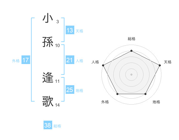 小孫 逢歌さんの天格は13画の5点!