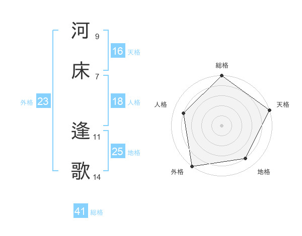 河床 逢歌さんの外格は23画の5点!