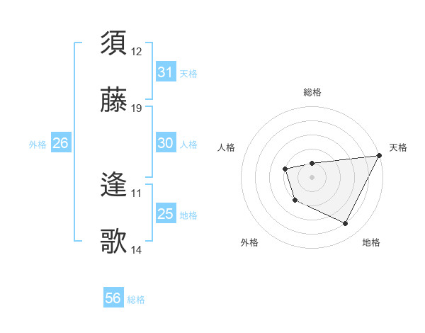 須藤 逢歌さんを姓名の画数から五運を鑑定