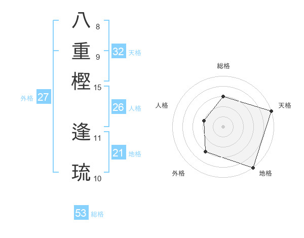 八重樫 逢琉さんの天格は32画の5点!